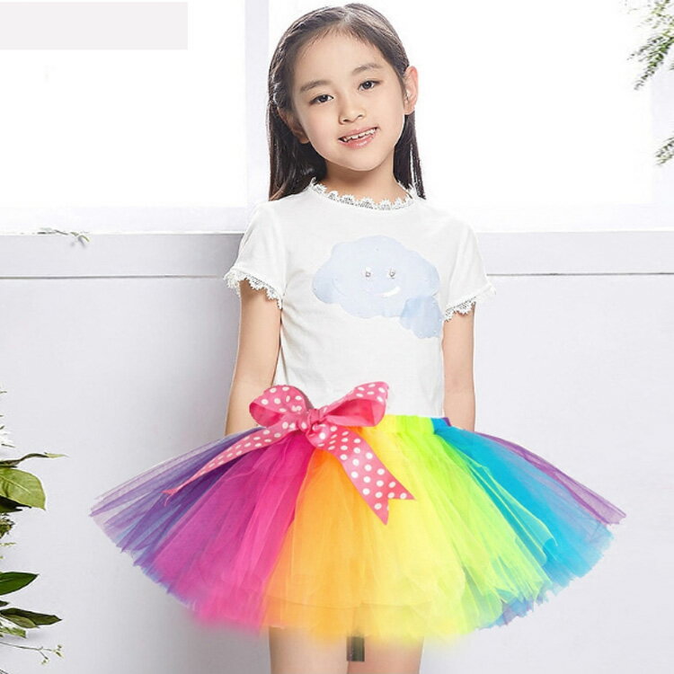 送料無料90-140cm!子供 女の子 レインボースカート チュチュスカート 虹色 ミニスカート チュール スカート カラフルレインボー ふんわり イベント ダンス 衣装 発表会 パーティー 演出服