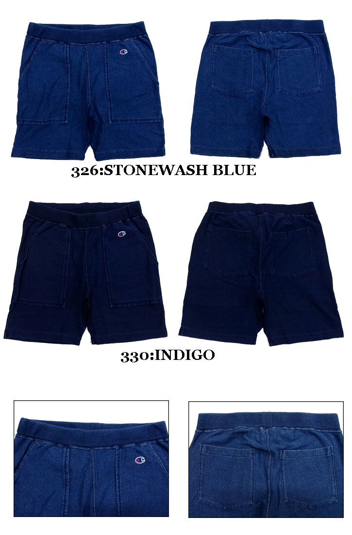 チャンピオンのリバースウィーブ インディゴ染め スウェットショートパンツ 9.4ozです。