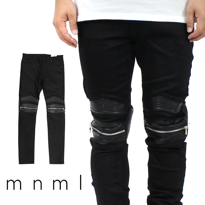 mnml ミニマル X186 STRETCH DENIM BLACK/BLACK クラッシュ ダメージジーンズ ダメージ デニムパンツ デニム スキニー スキニージーンズ ストレッチ ジーンズ メンズ タイト デニム インポート ブランド ストリート ファッション