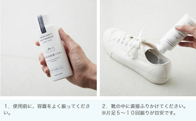 3.パウダーが靴の中で均一になるように、靴を振ってください。