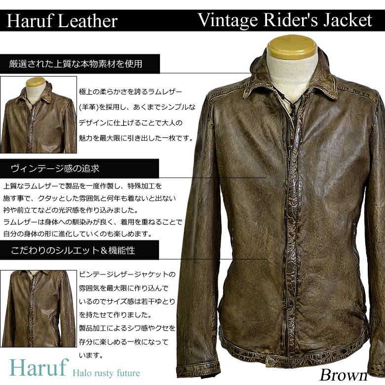ブラック レッド ネイビー Item Information <商品明細> Model No <モデルナンバー> 本革 レザーライダースジャケット M3151 Color <カラー> ブラウン 茶 Material <素材> 表地:羊革(ラム) 裏地:ポリエステル Country of production <原産国> パキスタン Specification <仕様> ポケットx2, 内ポケットx1 Accessories <付属品> ジャケットカバー(不織布) Time for delivery <納期> 3営業日以内に発送致します。