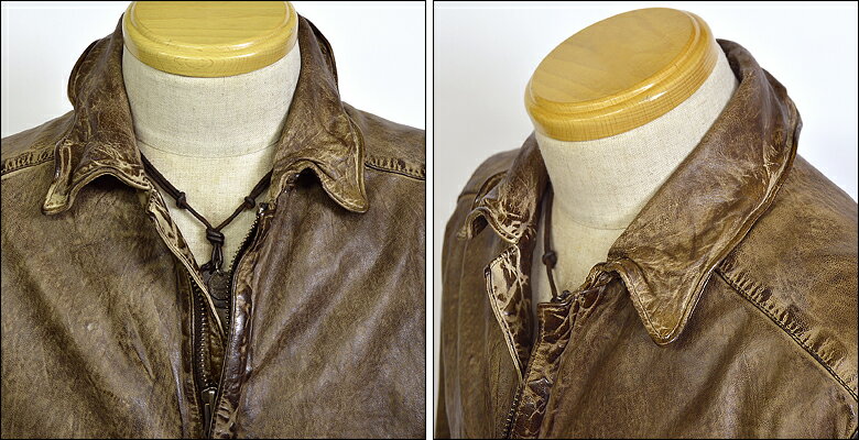 ビンテージ加工の後染めラムレザージャケットは ステッチ下などに革が染まっていない場所がありますが、 これは製品染の証でもあります。
